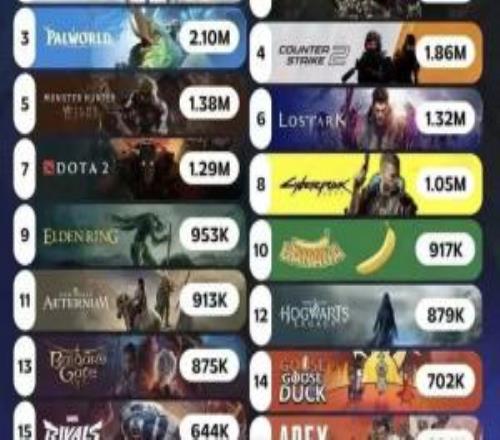 Steam游戏同时在线玩家榜:《绝地求生》325w,《黑神话》241w