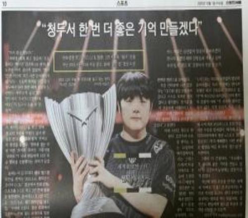 首尔体育报刊登Canyon夺冠瞬间:世界最强打野