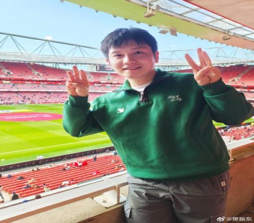 作为知名的足球迷,乒乓球选手樊振东曾多次在个人社媒分享自己现场观看足球比赛的经历。此前,樊振东受邀在伦敦酋长球场现场观看了英超阿森纳与曼城的比赛。