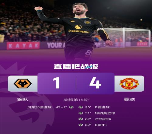 曼联三连胜挺进第六名B费火力全开狼队连续十五轮无胜_英超直播